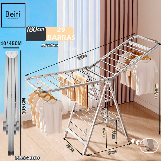 Tendedero Plegable Acero Inoxdable Premium 180cm Soporta 50kg Plateado