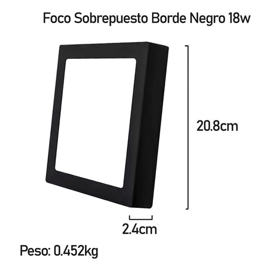 10 Foco Plafon Sobrepuesto Cuadrado 18w Luz Fria B. Negro