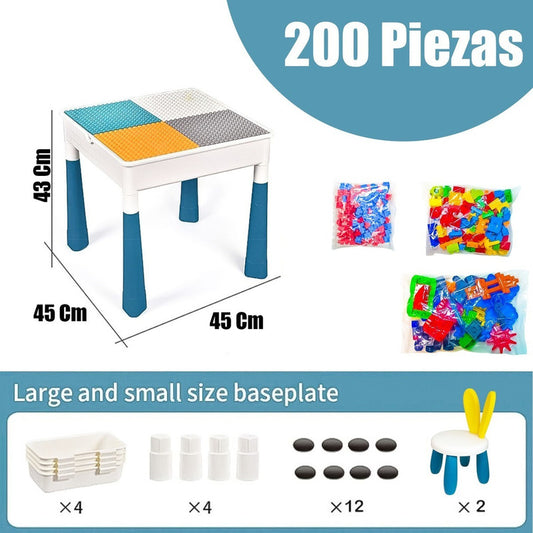 Mesa De Bloques Didactica Construccion 200 Pcs Y 2 Sillas