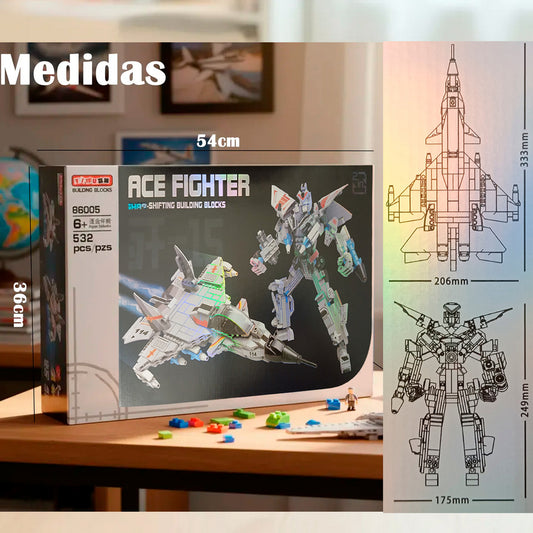 Juguete De Bloques Armable Avion Caza Modelo Robot 532 Piezas Didactico 2 en 1
