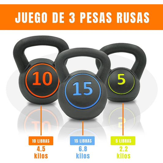 Kettlebell Set 3 Pesas Rusas 2.5/4.5/7 Kg Con Base Boomfit