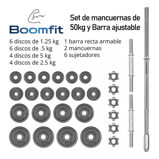 Set Mancuernas Barras Extendibles Kit De 50 Kg Con Maleta