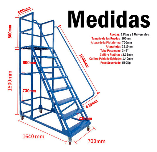 Escalera Industrial Tipo Avion De 7 Peldaños Con Plataforma De 1,85m 550kg