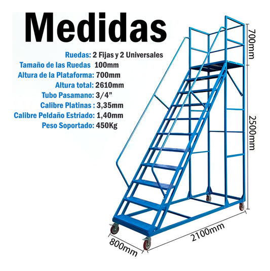 Escalera Industrial Tipo Avión De 10 Peldaños Con Plataforma De 2,5m 550kg