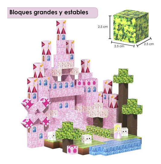 Bloques Magnéticos Cubos Grandes Tipo Minecraft Castillo 128 Piezas