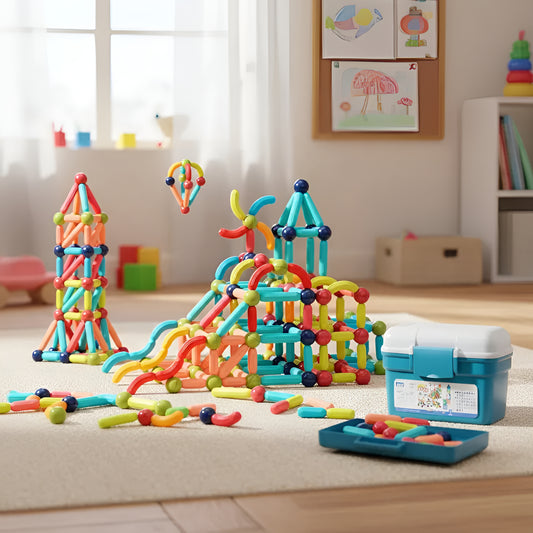 Bloques Magneticos 2 en 1 De Varillas 3D De 84 piezas Con Balde No Tóxico