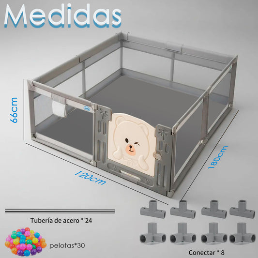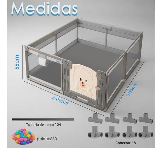 Corral Infantil Nubo Puerta Osito Malla Con Pelotas 180x200cm