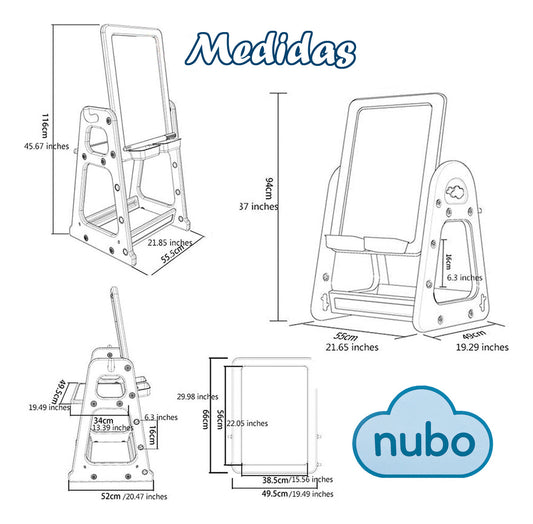 Pizarra Dibujo Para Niños Y Mesa De Trabajo 4 Niveles Azul Nubo