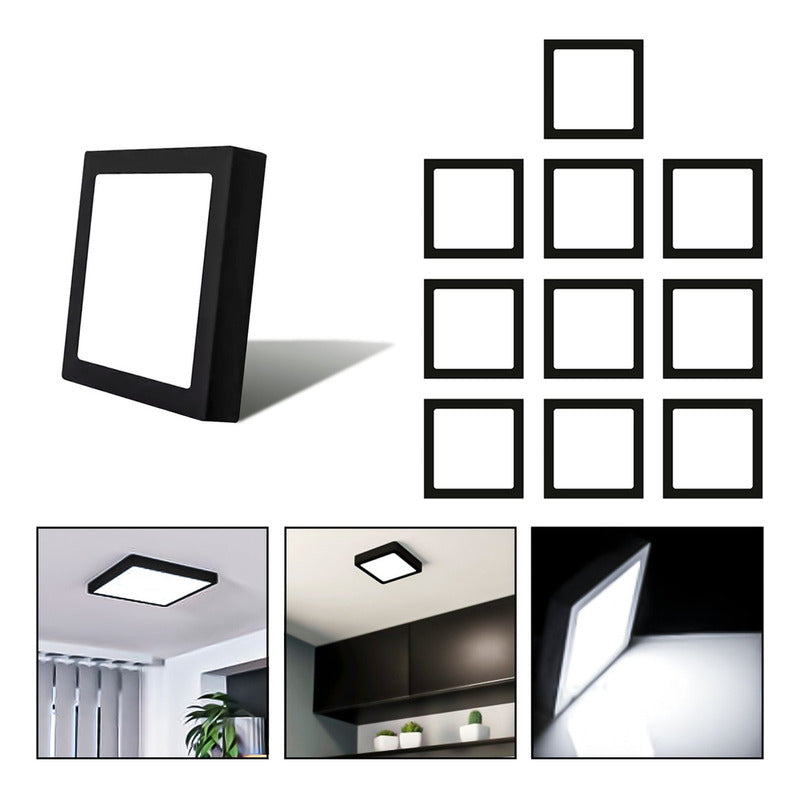 10 Foco Plafon Sobrepuesto Cuadrado 18w Luz Fria B. Negro