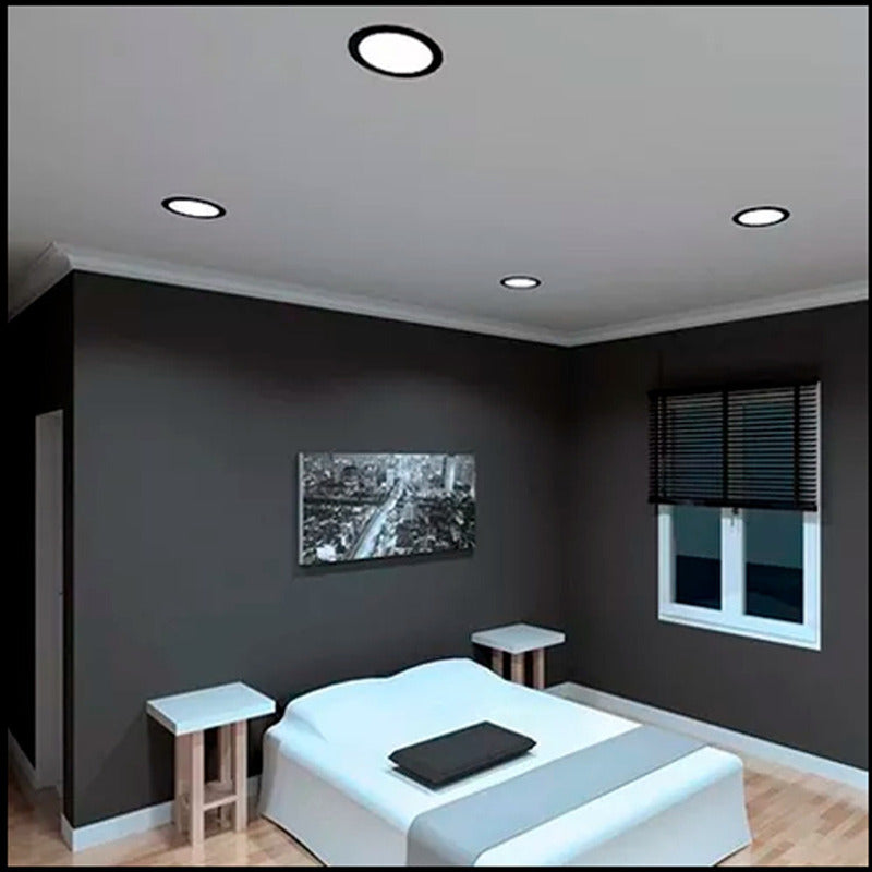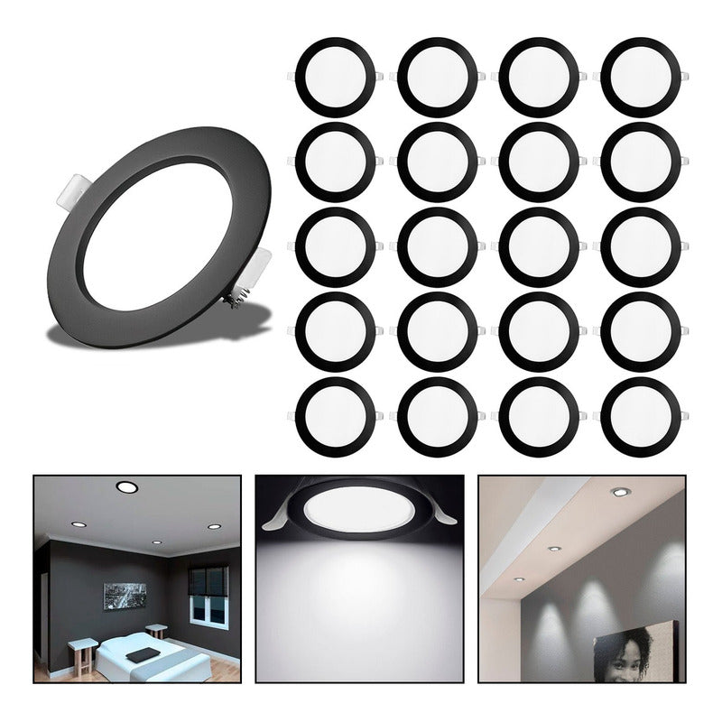 20 Foco Plafon Embutido Redondo 24w Luz Fria Borde Negro