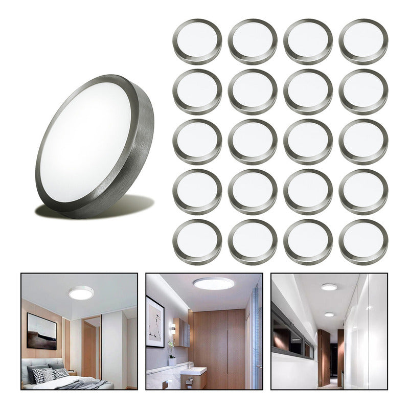 20 Foco Plafon Led Redondo Sobrepuesto 24w Luz Fria Niquel
