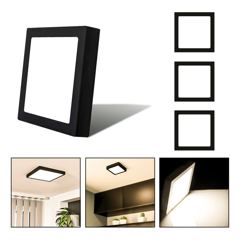 3 Foco Plafom Sobrepuesto Cuadrado 12w Luz Calida B. Negro