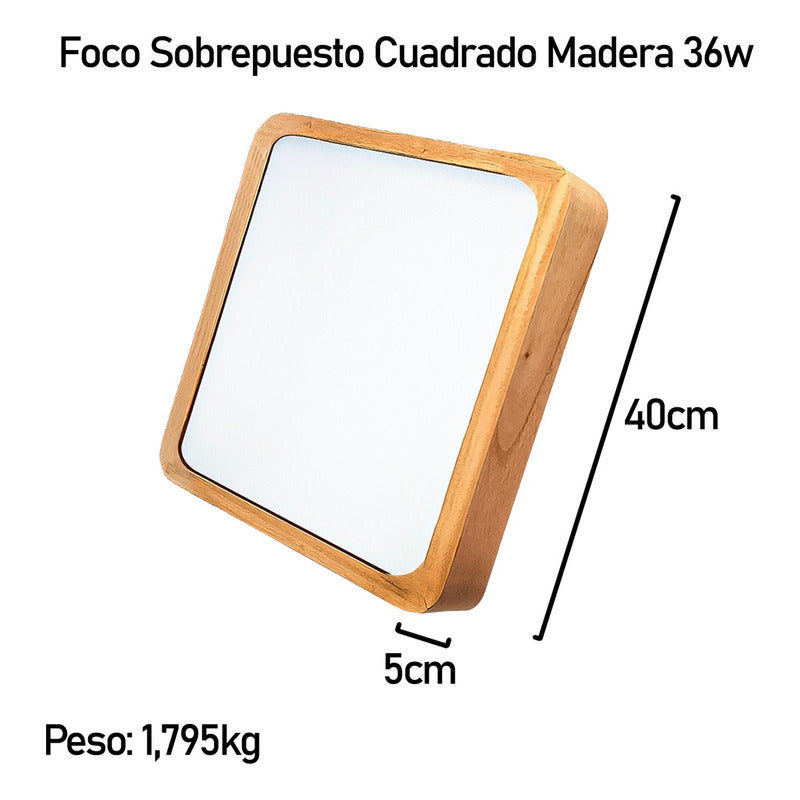 3 Foco Plafon Led Cuadrado Sobrepuesto 36w Luz Fria Madera