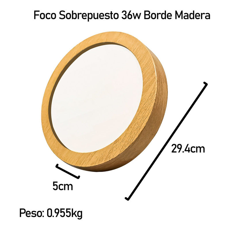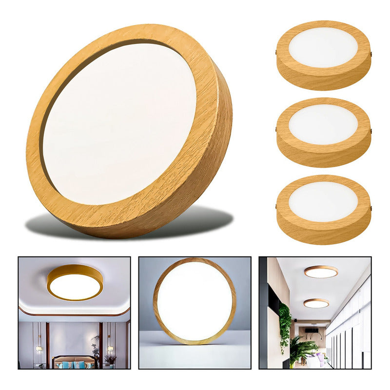 3 Foco Plafon Led Redondo Sobrepuesto 36w Luz Fria Madera