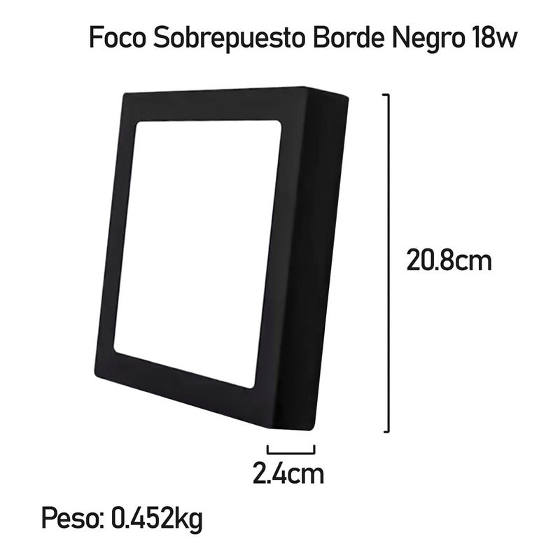 Foco Panel Plafón Led Sobrepuesto Cuadrado 18w Luz Blanca Fria