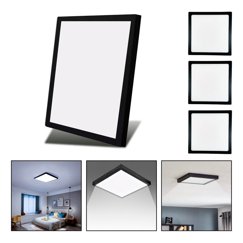 3 Panel Led 60x60cm Sobrepuesto Cuadrado 48w Luz Fría Negro