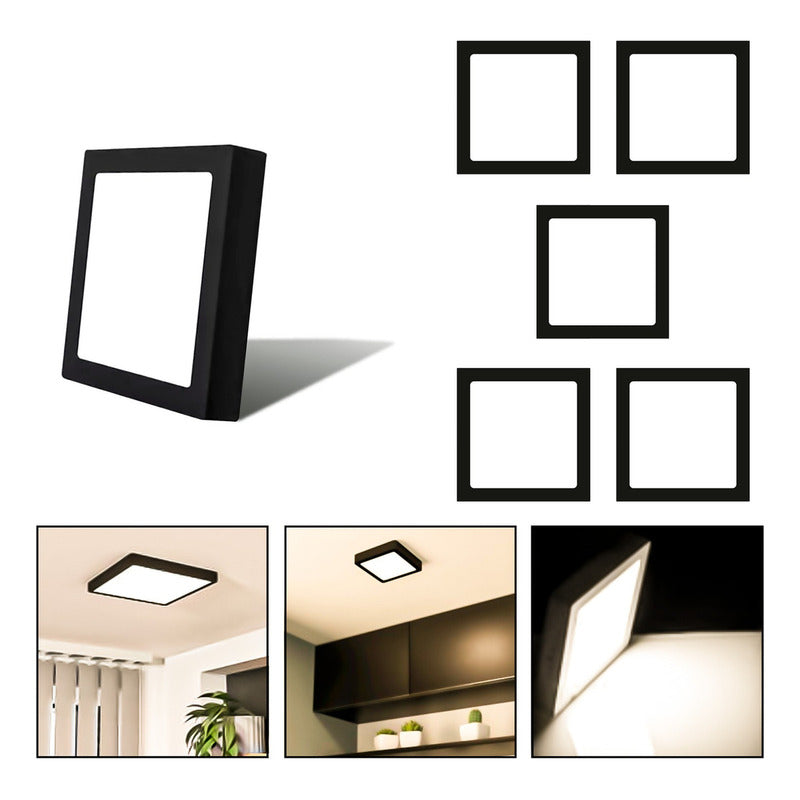 5 Foco Plafon Sobrepuesto Cuadrado 12w Luz Calida B. Negro