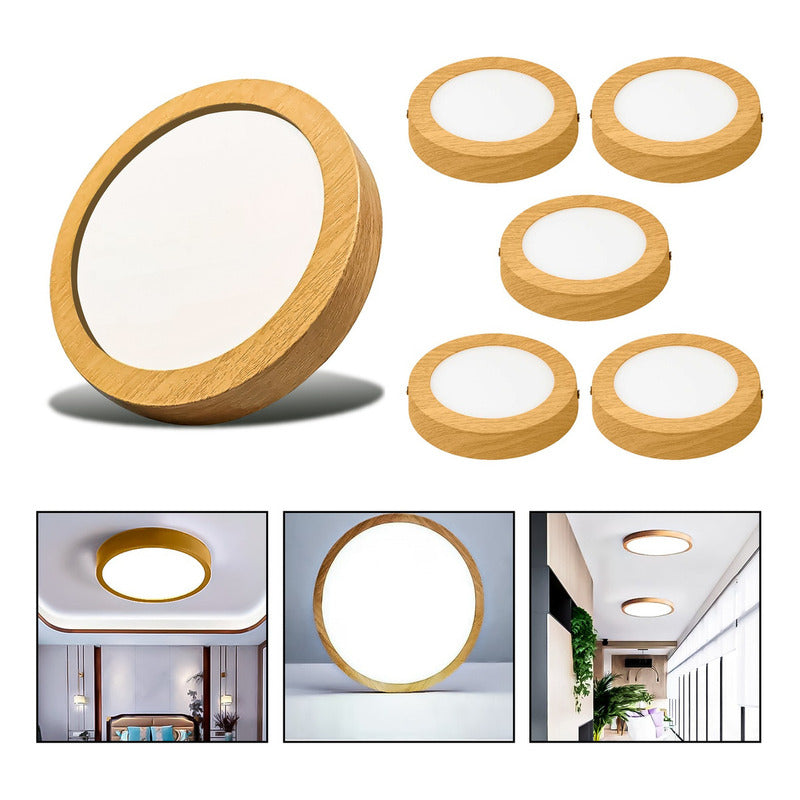 6 Foco Plafon Led Redondo Sobrepuesto 36w Luz Fria Madera