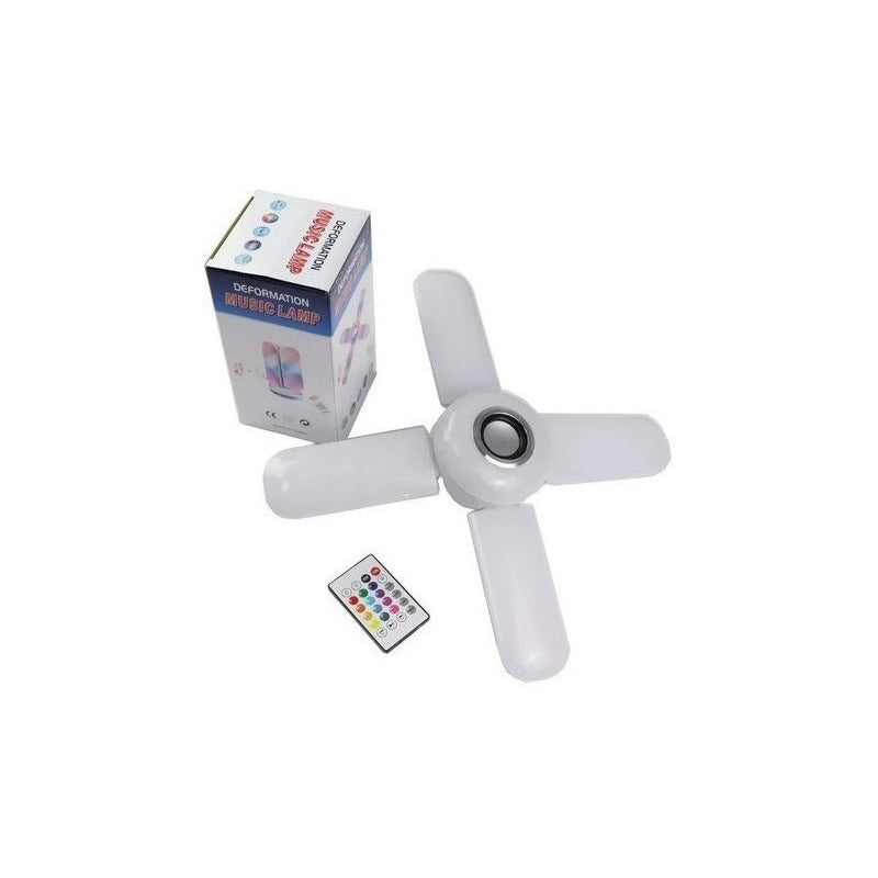 Bombilla Inteligente RGB con Altavoz Bluetooth y Control Remoto, diseñada para optimizar ambientes festivos y reuniones sociales. Proporciona iluminación superior de 60W con espectro cromático completo, mientras su sistema de audio integrado transmite música de alta fidelidad. Su configuración de cuatro aspas luminosas y control remoto incluido garantizan una instalación sencilla y operación intuitiva para transformar cualquier espacio en un entorno audiovisual inmersivo.