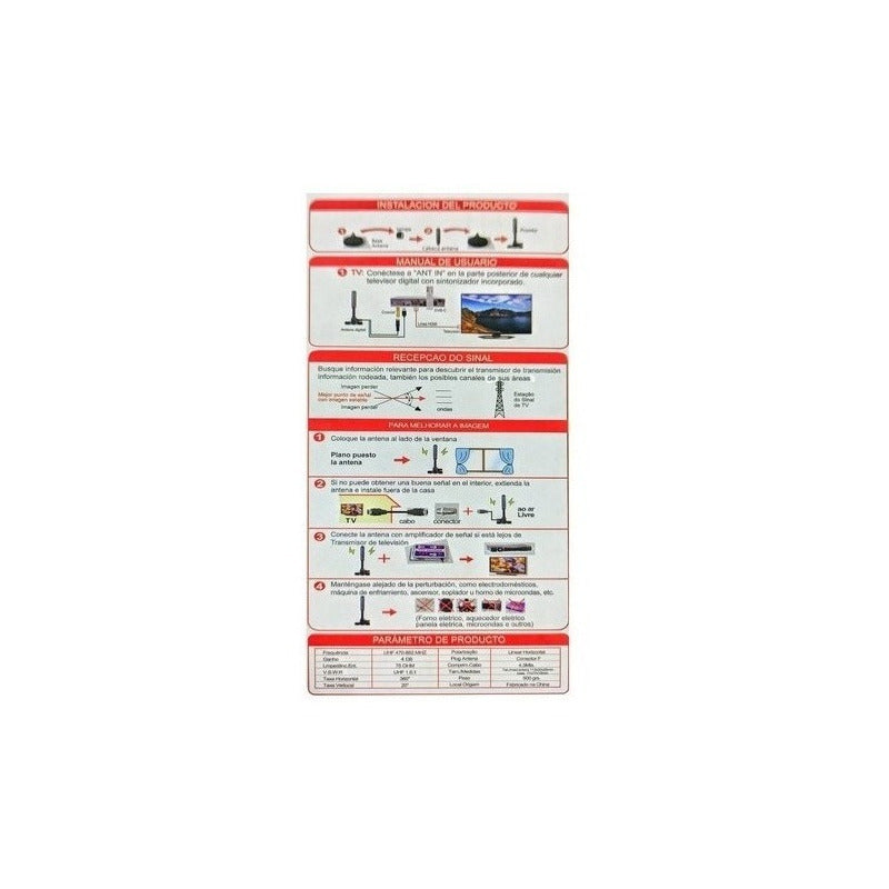 - Rango de frecuencia UFH 170-230 MHz, VHF 470-860 MHz.