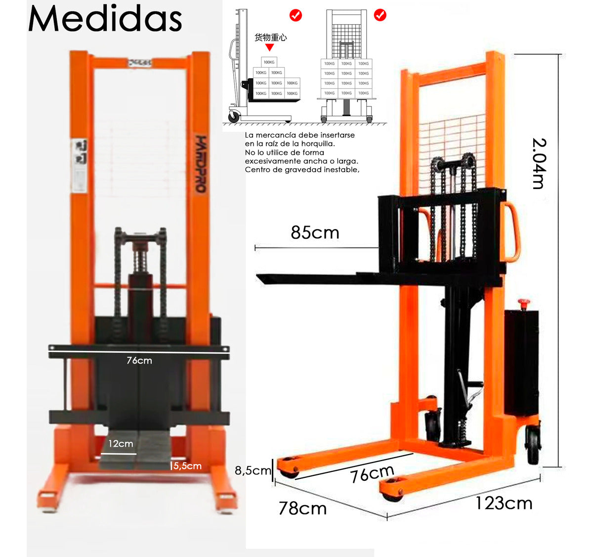 Apilador Hidráulico Eléctrico En Acero 2 toneladas 1,6 metros Montacarga Hardpro