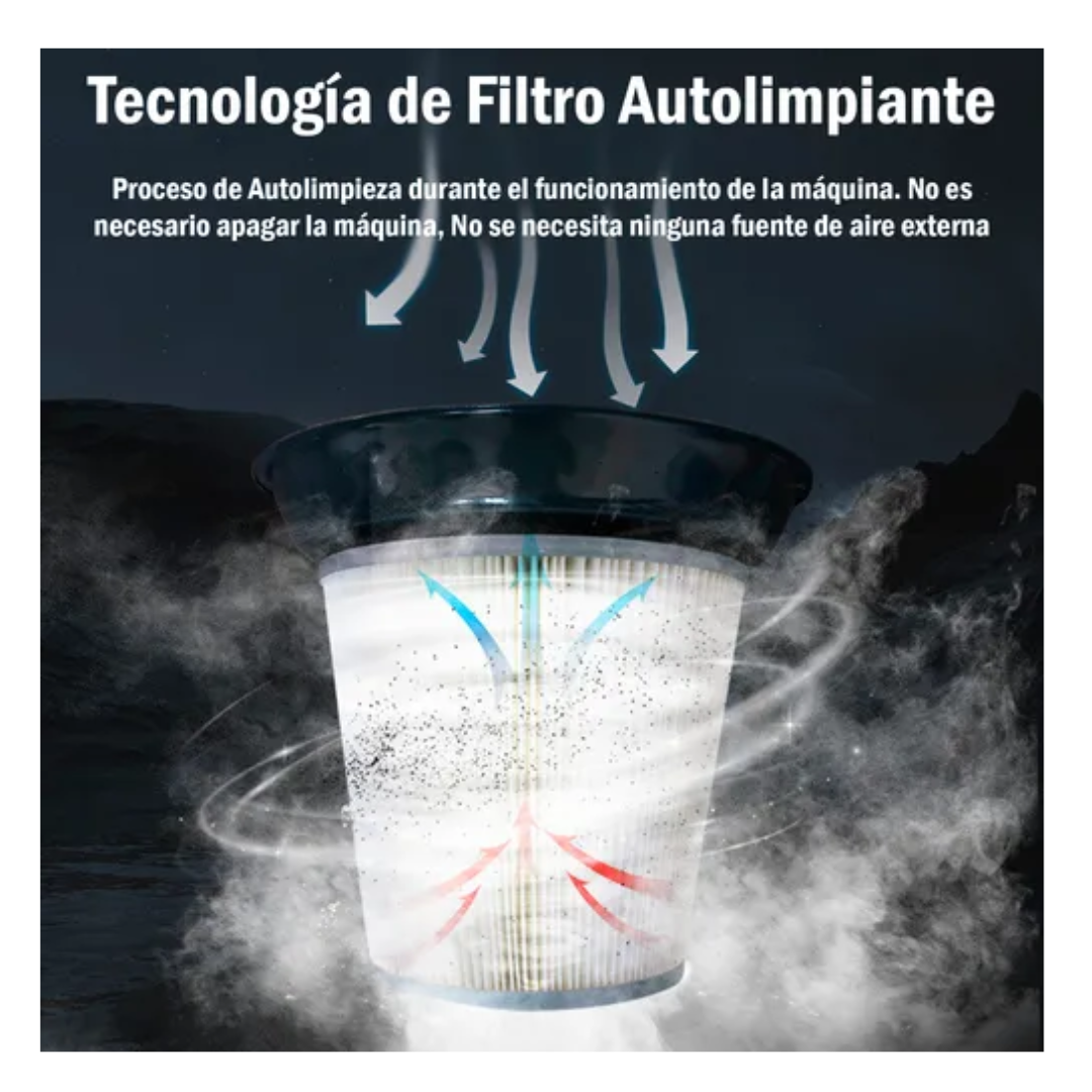 Este modelo incorpora funciones avanzadas como un sistema de retrolimpieza y tres modos de operación, lo que permite al usuario maximizar el rendimiento en diferentes situaciones. Con su diseño inalámbrico, se elimina la limitación de los cables, lo que proporciona una movilidad singular en grandes espacios.
