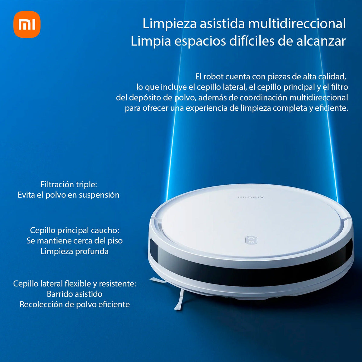 La Xiaomi Robot Vacuum E10 no es solo un electrodoméstico, es tu asistente personal de limpieza que trabaja silenciosamente para mantener tu hogar impecable. Con su diseño compacto en elegante color blanco, se integra armoniosamente en cualquier decoración mientras revoluciona tu experiencia de limpieza.