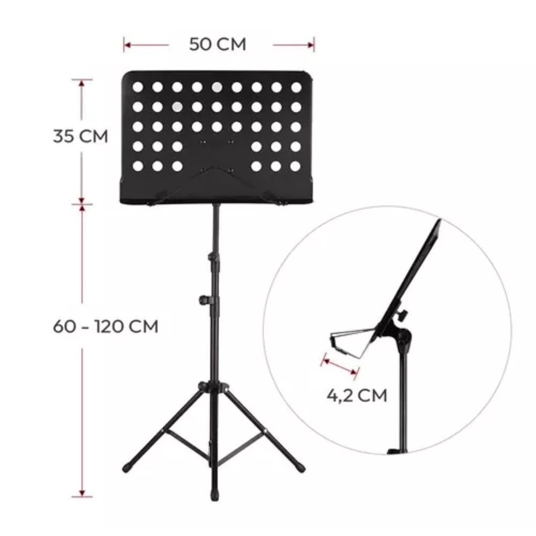 Atril para partituras con altura regulable, con un diseño portable y liviano, bastante practico para llevar a cualquier lugar, con soporte de alta calidad.