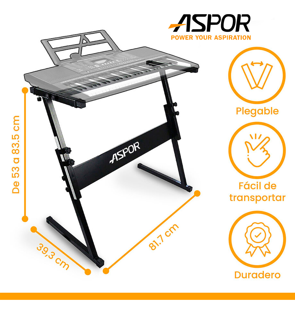 Presentamos el soporte para teclado electrónico Q-168A De la Marca Aspor: el compañero definitivo para los músicos que buscan estabilidad, versatilidad y comodidad. Diseñado para mejorar su experiencia al momento de tocar, este soporte ofrece una gran cantidad de características notables que lo distinguen de la competencia.