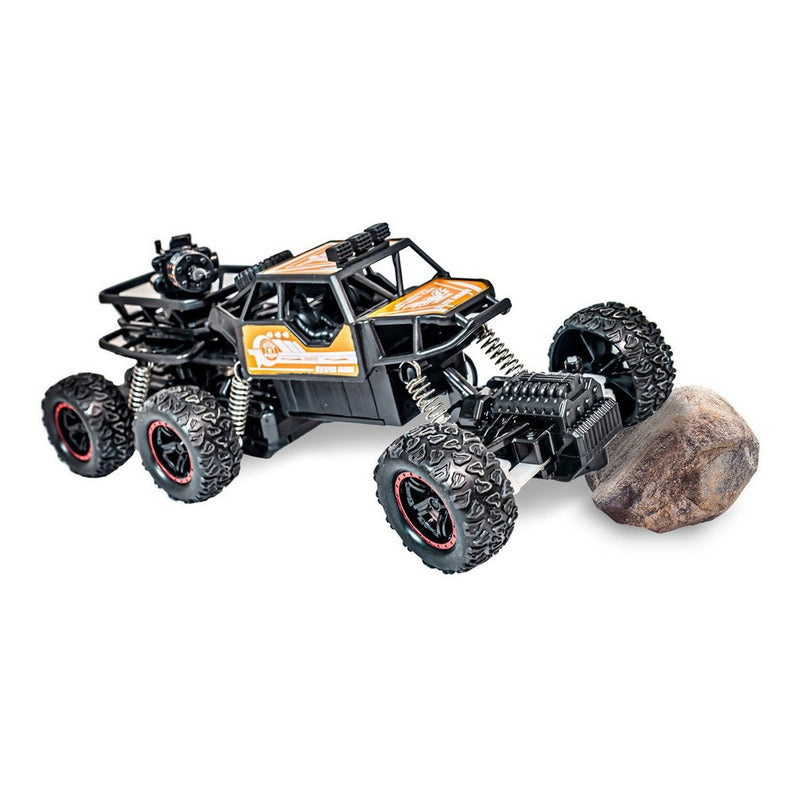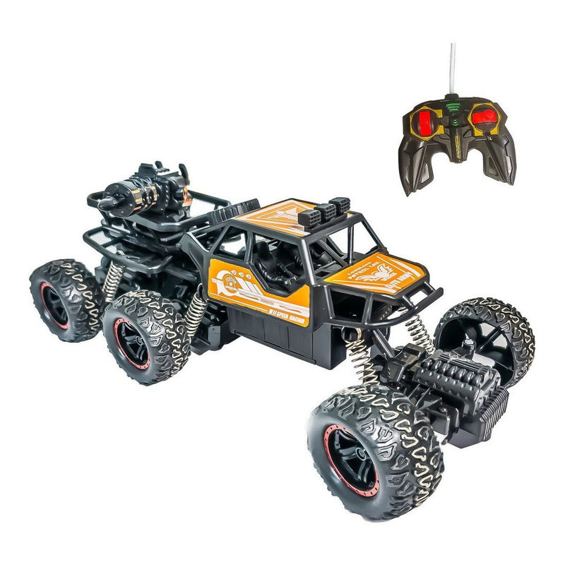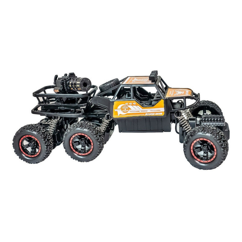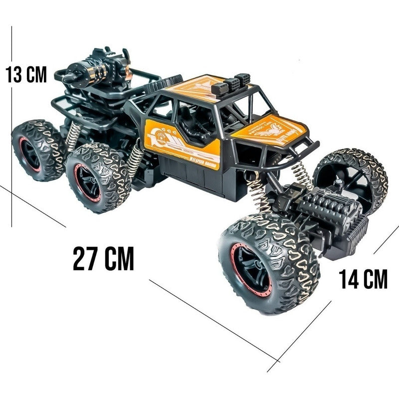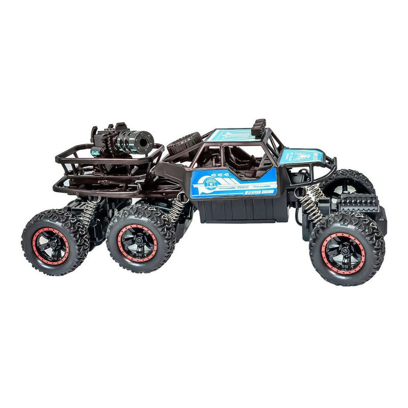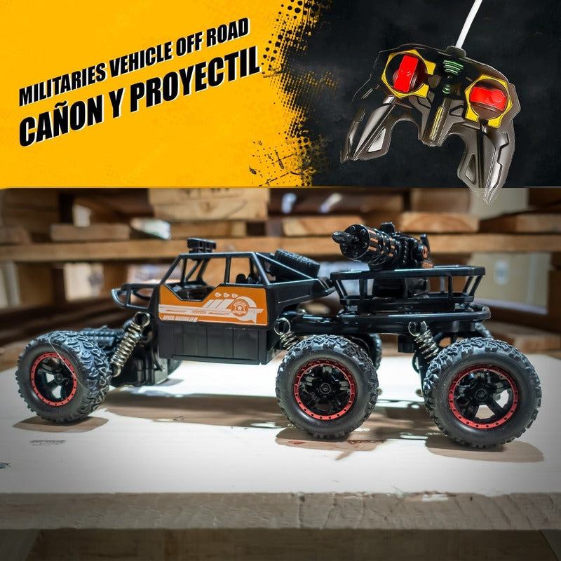 Auto a control Remoto off road de 6 ruedas con cañon de 4 proyectiles, Este gran auto a control remoto te permite conducir hasta por las superficies mas dificiles gracias a sus neumaticos todo terreno y su gran agarre para no resbalarse en las superficies, el regalo ideal para un niño que le encanten los autos a control remoto.