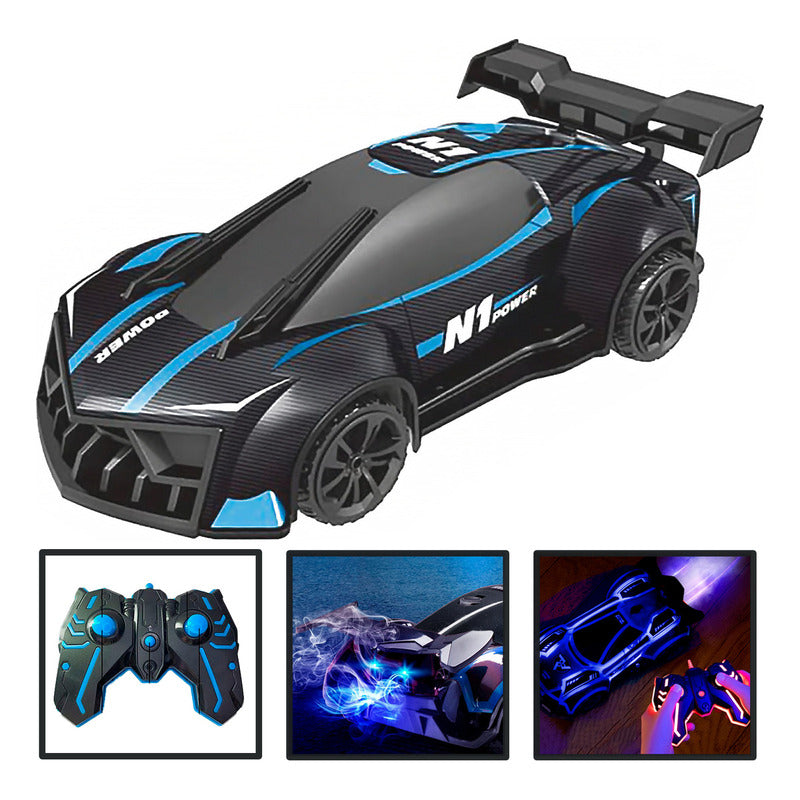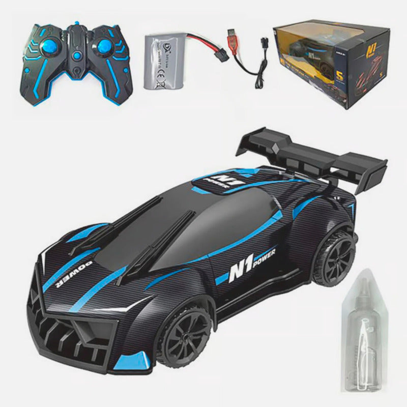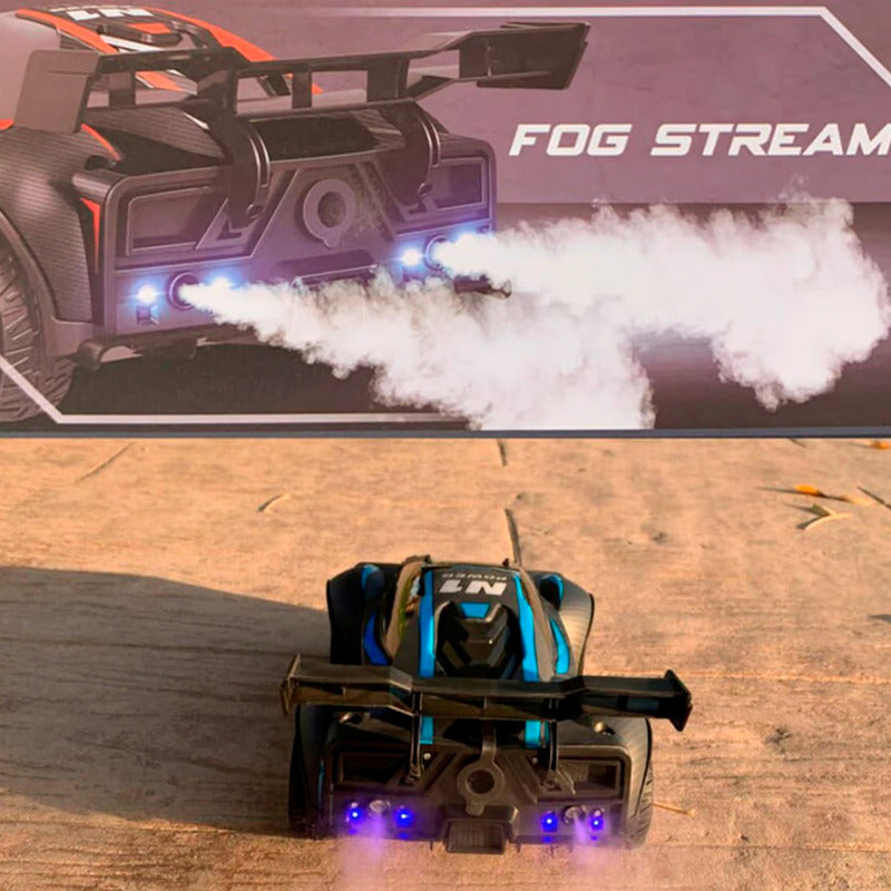 Coche con control remoto Fog Stream N1 Power para niños RC es un automóvil de control remoto de alta velocidad que tiene 5 modos LED intermitentes brillantes, neumáticos 2WD antideslizantes y batería recargable; solo agregue agua para dejar un rastro épico de niebla