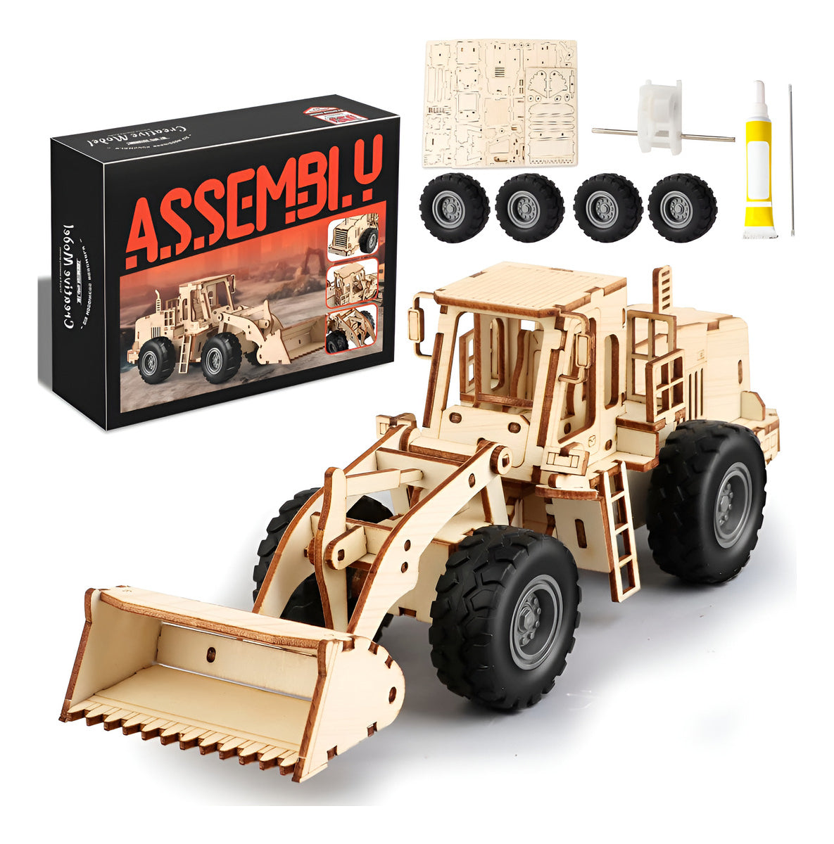 Auto Armable 3d Madera Tractor Construccion 106pcs Didactico