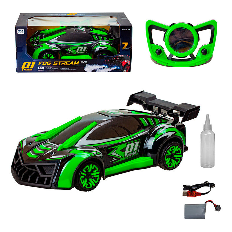 Coche con control remoto Fog Stream P1 Power para niños RC es un automóvil de control remoto de alta velocidad que tiene 5 modos LED intermitentes brillantes, LED intercambiables ( destornillador incluido ), neumáticos 2WD antideslizantes y batería recargable; solo agregue agua para dejar un rastro épico de niebla