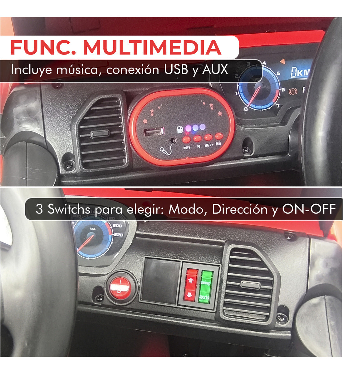 - Posee un Switch de Modo que permite elegir entre la función Mecedora o Marcha (Conducción).