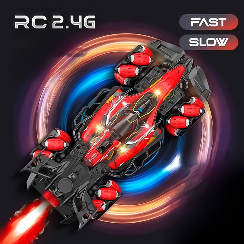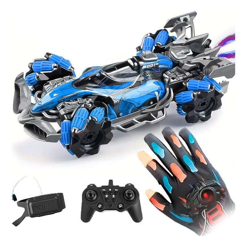 Auto a Control Remoto 4x4 con turbina, controlado por Guante con sensor de muñeca, Controlador de muñeca pequeño y control remoto, el cual te permite conducir el vehiculo en cualquier direccion, sus neumaticos cuentan con neumaticos con rodamientos lo cual le permite al vehiculo desplazarse a los lados de una manera mas rapida que los autos a control remoto convencionales.