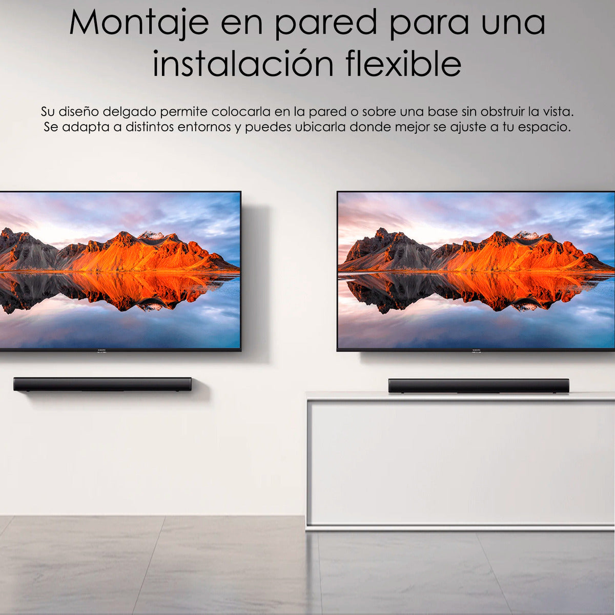 Ideal para quienes buscan una solución de sonido que combine rendimiento y estilo, ya sea desde la Pared o desde el mesón el Xiaomi TV Soundbar es la elección perfecta para una experiencia del cine en casa y la música sea excepcionalmente inmersiva. Mejora tu sistema de entretenimiento y sumérgete en un mundo de sonido superior con este producto de Xiaomi.