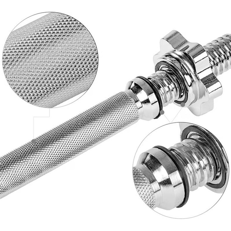 - La barra tiene 2 roscas trapezoidales (para fijar las pesas) que aseguran