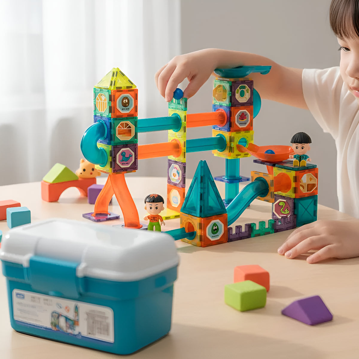Cada set incluye piezas geométricas seguras y no tóxicas, ideales para niños de 3 a 12 años. El material plástico y los imanes de alta calidad garantizan una experiencia de juego segura y duradera. Los pequeños ingenieros disfrutarán explorando conceptos de geometría y física mientras desarrollan habilidades motoras y de resolución de problemas.