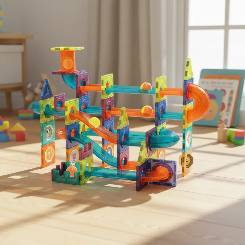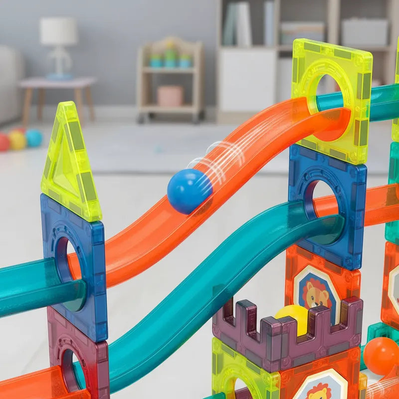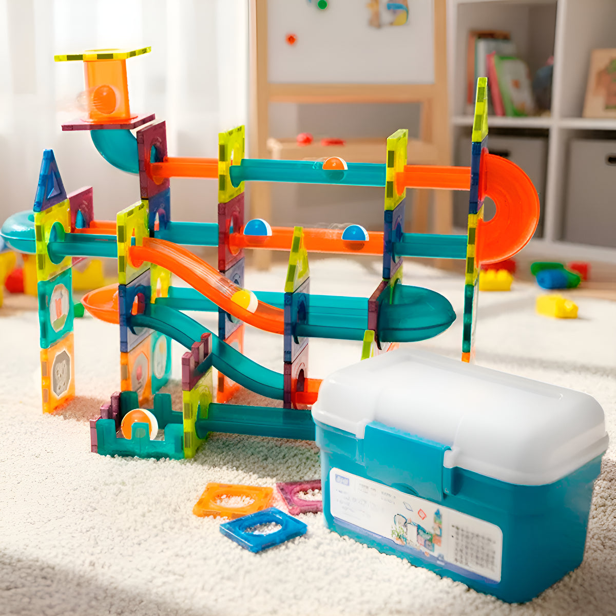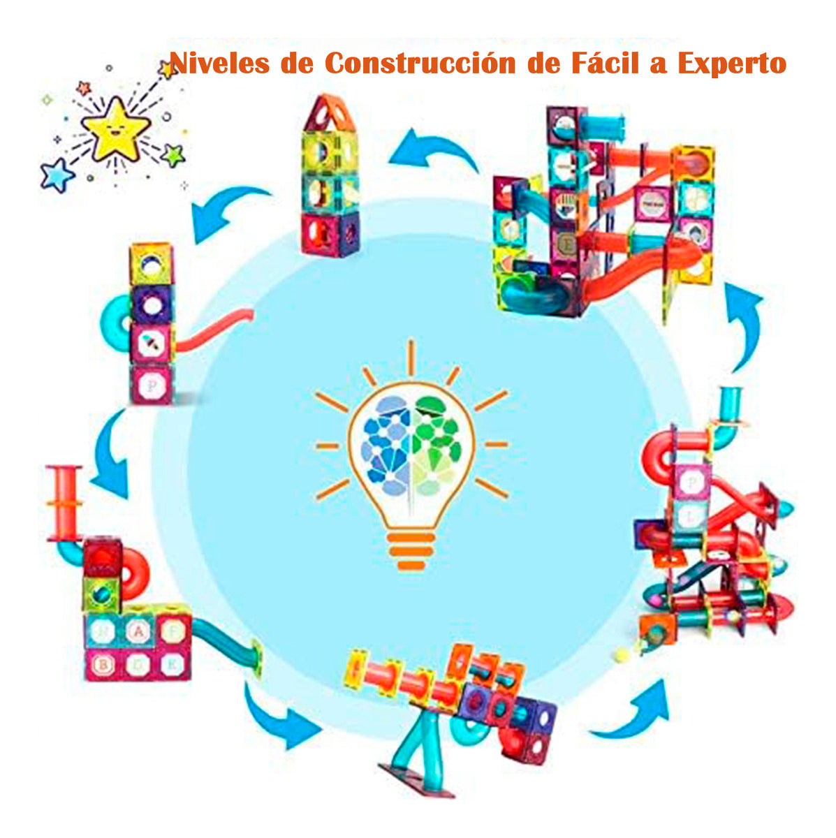 Bloques Magneticos 2en1 Tobogán De Bolas 3D Balde De188pzs