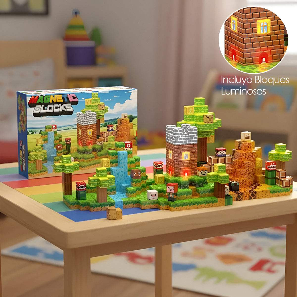 Bloques Magnéticos Tipo Minecraft 137 Pcs 3 Bloques De Luz
