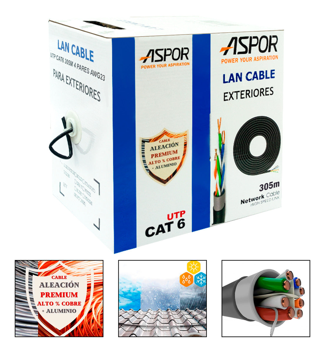 El Cable De Red Aspor Cat6a 23AWG 305M para Exterior es la solución ideal para quienes buscan una conexión de alta velocidad y confiabilidad. Diseñado para ambientes interiores y exteriores, este cable UTP ofrece un rendimiento excepcional con un ancho de banda de 500 MHz, lo que lo convierte en la opción perfecta para aplicaciones que requieren un gran volumen de datos. Con su construcción circular y su material conductor, garantiza una transmisión eficiente y sin interferencias.