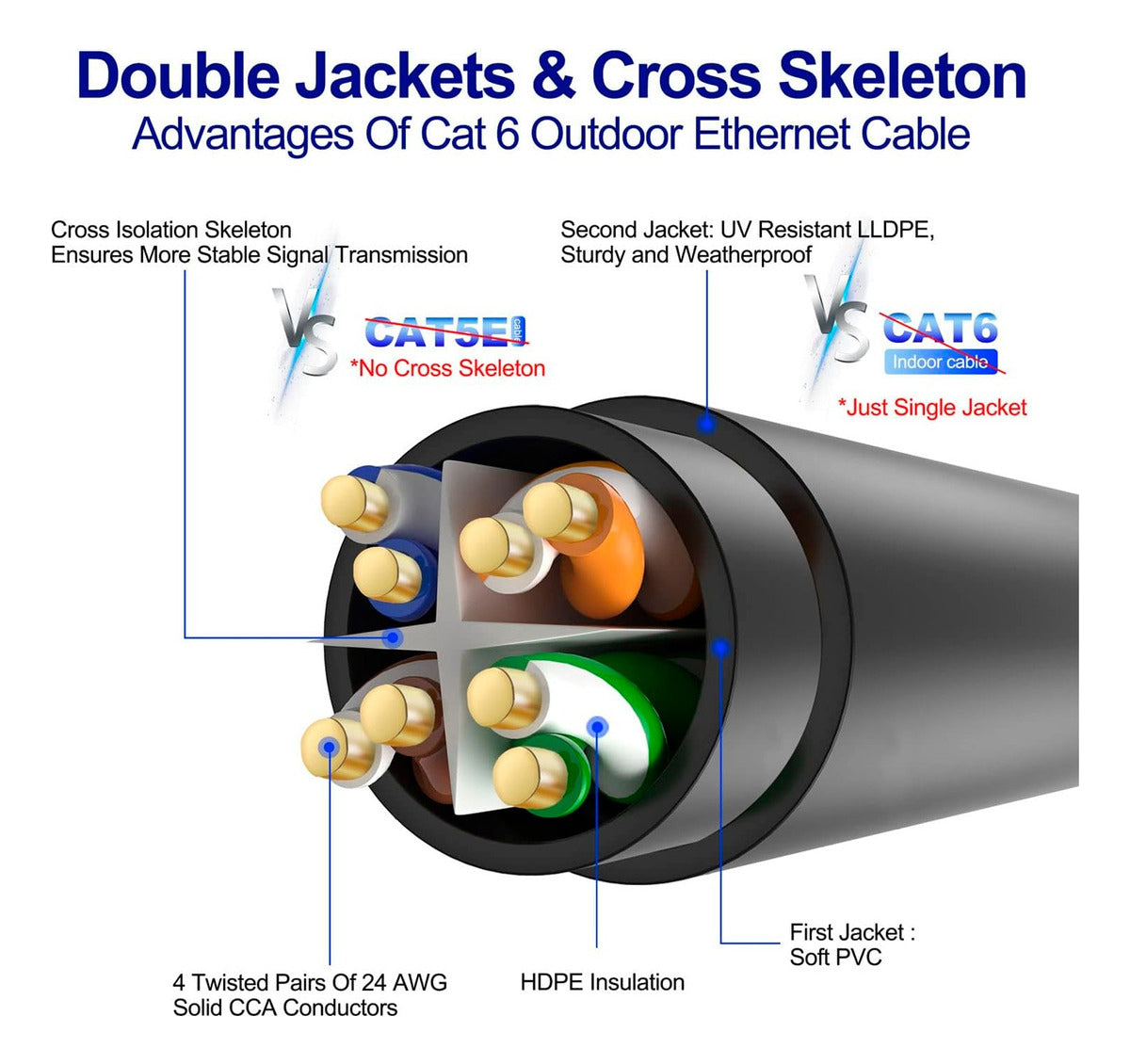 El revestimiento de PVC UV proporciona una protección adicional contra los elementos, asegurando que el cable mantenga su integridad y rendimiento a lo largo del tiempo, incluso en condiciones climáticas adversas o Subterráneas. Con un largo de 305 metros, este cable es ideal para proyectos de gran escala, ofreciendo la flexibilidad necesaria para adaptarse a diversas configuraciones de red.