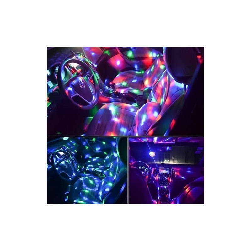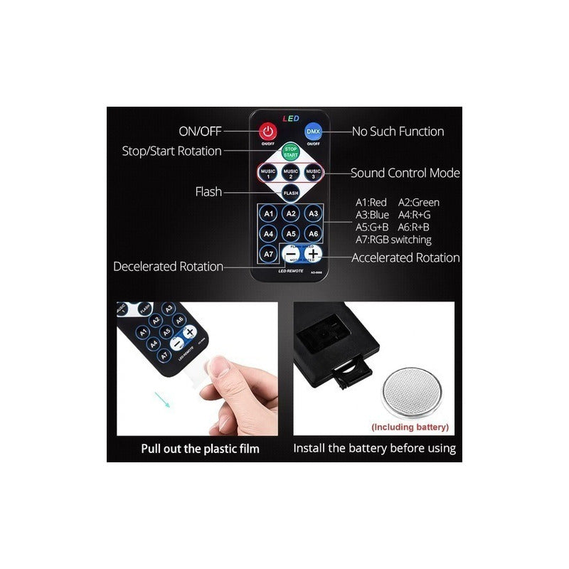 Luces rítmicas para fiestas giratorias, funcionan al ritmo de la música con 7 combinaciones diferentes de luces y con regulación de velocidad de movimiento de las luces.