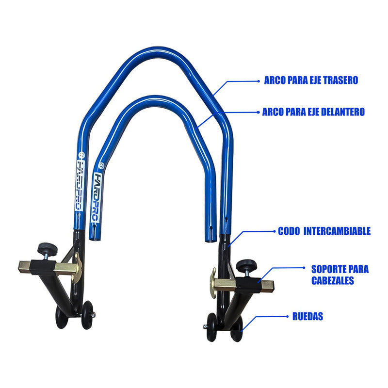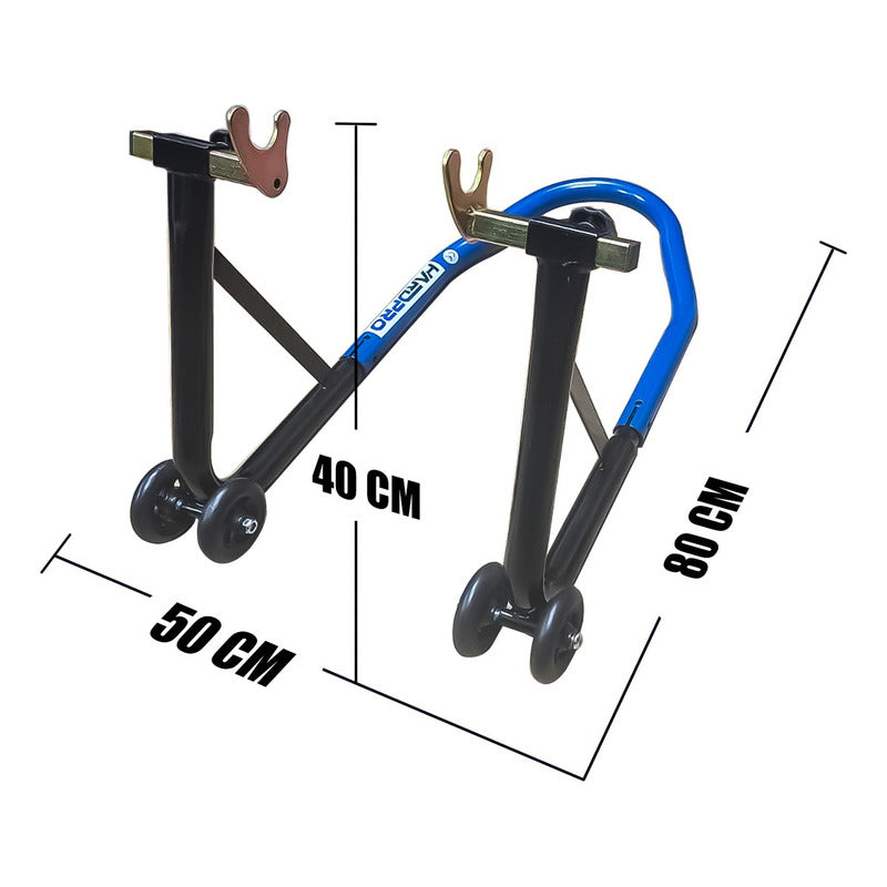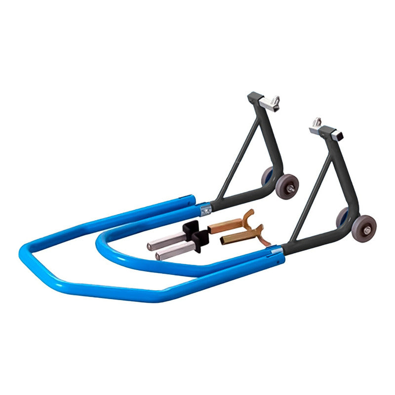 El soporte de motocicleta de alta calidad está diseñado para ofrecer durabilidad y fiabilidad excepcionales. Con un marco de metal robusto y recubierto de polvo negro, garantiza resistencia a la corrosión y una larga vida útil. Ideal para tareas de mantenimiento, su diseño incluye cabezales de horquilla ajustables y una capacidad de carga de 200KG por rueda, asegurando estabilidad y seguridad. Fácil de montar y operar, con ruedas giratorias para facilitar el movimiento, es una herramienta versátil adecuada para una amplia gama de motocicletas deportivas.