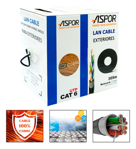 Bobina De Red Cat6a 100% De Cobre 305m 23awg Para Exterior RJ45