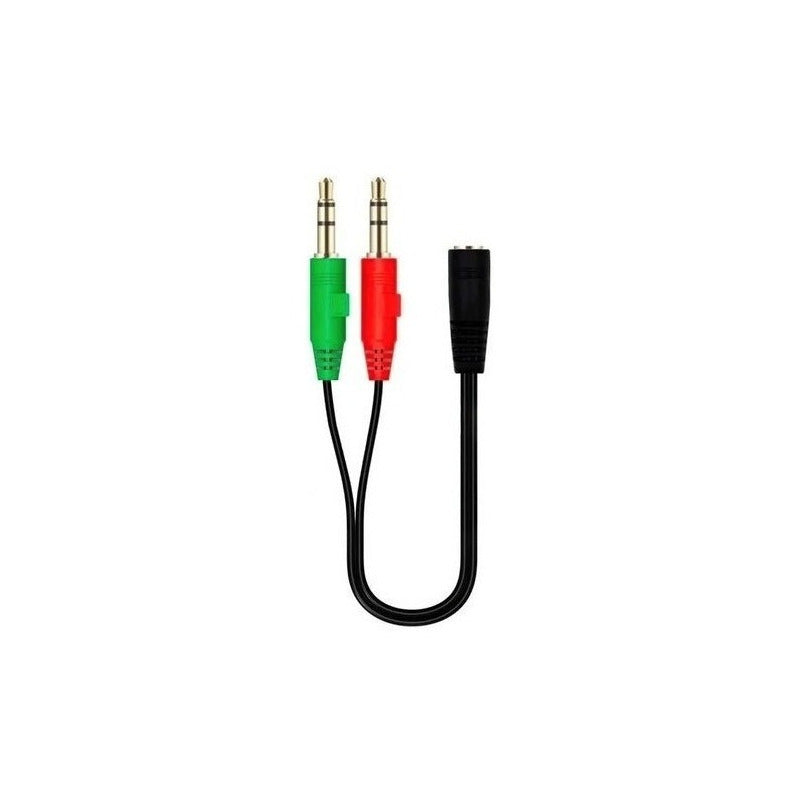 Adaptador divisor de 2 vías para auriculares con conector de Audio estéreo de 3,5mm., este adaptador te permite conectar un Audífono con manos libres hacia dos puertos Auxiliar 3.5 Macho, se usa mucho en notebooks y computadoras de mesa.