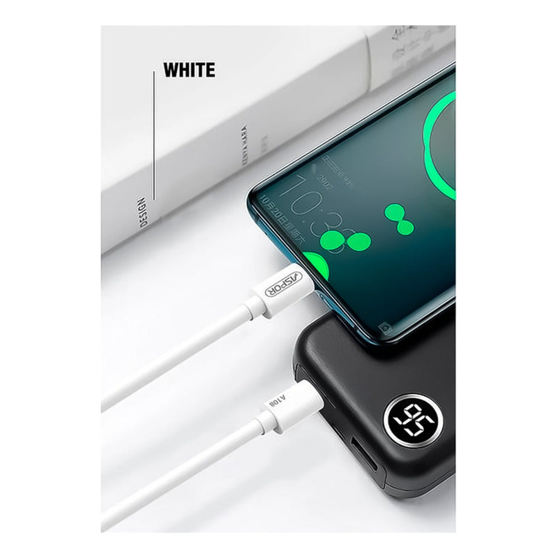 Cable Tipo C a Tipo C de alta potencia con capacidad de 100W y 2 metros de longitud. Certificado para carga rápida y transferencia de datos eficiente. El modelo A108L de Aspor garantiza compatibilidad óptima con dispositivos modernos que utilizan puerto USB-C. Ideal para cargar smartphones, tablets y laptops que requieren alimentación de alta potencia con máxima velocidad y seguridad.