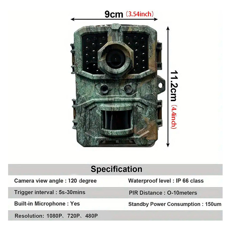 La oscuridad ya no es un obstáculo gracias a sus 26 potentes LED infrarrojos de 940nm que proporcionan una visión nocturna clara hasta 15 metros sin emitir el destello delator que ahuyentaría a la fauna. Su robusta construcción con certificación IP66 la convierte en una compañera infalible en cualquier aventura al aire libre, resistiendo lluvias torrenciales, nieve, polvo y temperaturas extremas desde -20°C hasta +70°C. La versatilidad define a esta cámara: configúrala para capturar imágenes, videos con sonido o ambos simultáneamente, programa intervalos de tiempo personalizados y protege tu información con contraseña.