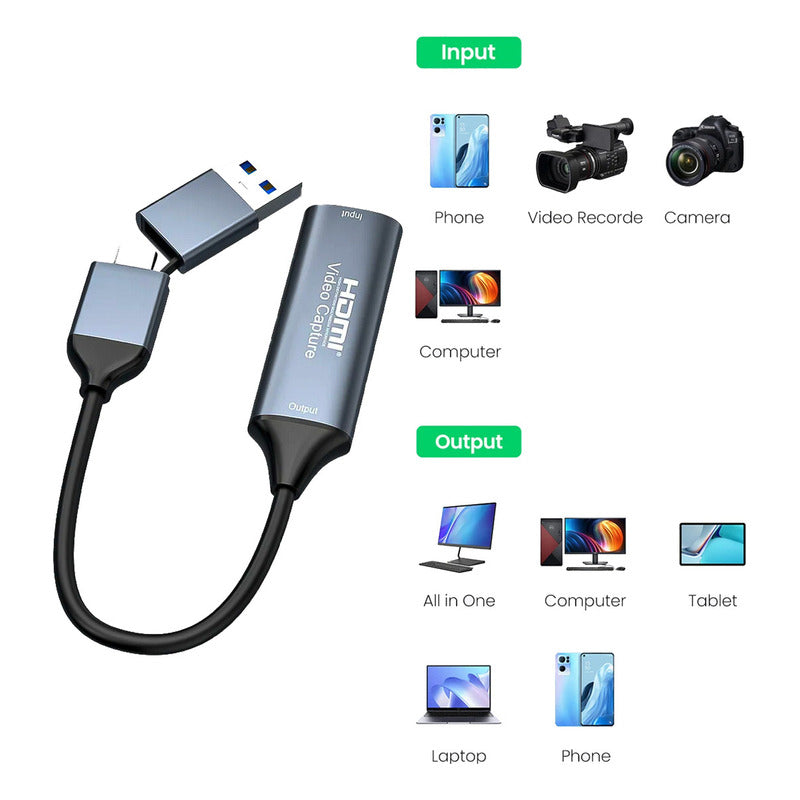 Capturadora De Video Tipo C Hdmi Usb 3 En 1 1080p 4k 60h 3.0