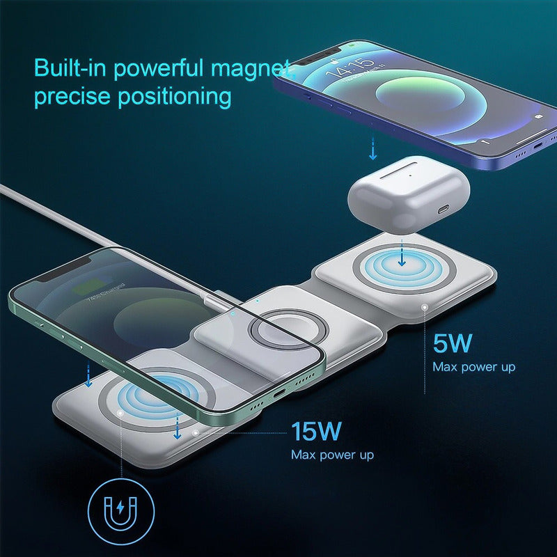 Cargador Inalámbrico Rapido Magnetico 3 En 1 Telefono Reloj